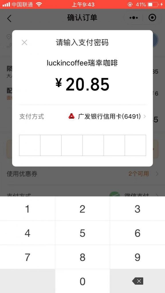 3. 客户用他们的微信钱包密匙确认付款。